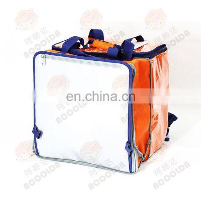 Product DescriptionProduct Model:ACD-B-010Size&Capacity:Outer size:44*38*45cm Inner size:42*36*43cm 75LMaterial:Outside 500D PVC+Relecting Material+9mm insulation foam+Aluminum foil lining+ Normal zipper+Bottom hollow plateColor: Black ,red ,orange,blue,yellow, green or custom colorMOQ:300PCSCarton package size:47*45*73 8pcs/ctnsDelivery date:30 days for mass productionLOGO:could be customerized if meet our MOQOEM/ODM:WelcomeOEM sample time:around 7-10 daysPayment:Trade Assurance/ 30% for order deposit, 70% blance before deliveryFeature:1.Backpack and handle design.2.Large capacity.3. The thick 500D PVC +9mm insulation foam4.aluminum interior providing an extra layer of heat reflection, will not retain moisture or odors.5.This delivery bag is collapsible and easy to disassemble.6. Custom logo and colors.use way:On bicyle,on car,hand,liftCan be use as cooler bag or keep hot bag for pizza,cake,fast food delivery or keep fruit fresh and cans drinking cool.1. Shoulder Strap: With padding and is comfortable.2. Waist belt: Can carry better.3. Foam padding: feel more comfortable when carry.Backpack Design Handle DesignRelated ProductsCompany IntroductionFAQ