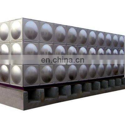 Industrial Large Volume Rectangular Stainless Steel Drinking Water Storage TankThe stainless steel water tank is a new generation of water tank products after the FRP water tank. Its products are made of SUS304 stainless steel plate by precision molding. The shape is beautiful, economical and practical, and the main body is durable. Compared with other water tanks, stainless steel water tanks have beautiful appearance, light weight, high strength, corrosion resistance, high temperature resistance, clean water quality, impermeability, earthquake resistance, never moss, no secondary pollution of water quality, easy installation, no maintenance, convenient Many advantages such as cleaning.Product Feature1. Never rustThe imported food-grade SUS stainless steel plate is selected, which has high corrosion resistance, aging resistance, long service life, and does not breed algae inside, ensuring clean and hygienic water quality.2. Never leakUnique structure design, full welding site combination, argon arc welding tungsten electrode fusion welding, no leakage point, never leak.3. Light weightA unique stamping forming process is adopted, and the 1-3mm thin plate is used to enhance the material strength, and the weight is only one third of the ordinary steel plate water tank.4. Random combinationModular design standard version (specification 1m × 1m, 1m × 0.5m, 0.5m × 0.5m), can be arbitrarily combined to meet the site requirements of different sizes, polygons, L-shaped and other sites.5. Beautiful appearanceSmooth lines, unique shape and perfect design.6. Comply with fire protection and building codesThe stainless steel water tank is not flammable and can also play a role in the initial fire water supply, which meets the national fire and construction requirements.Product nameStainless steel water tankPanel materialSS304, SS316Panel size0.5m*0.5m, 0.5m*1m, 1m*1mPanel thickness1mm ~ 3mmCapacityCustomizedInstallation wayWelding, boltingCustomizationAcceptedUsageWater storageStainless steel water tank accessoryBolt. nut & washers: stainless steel 304 material.Sealing material: Non-toxic P.V.C foam tape shall be used in between the joints.Covers:The tank cover shall be constructed from 1.2mm to 3.0mm of thickness stainless steel 304 material according to the requirement.Flanges :The sectional panels shall be pressed to double flanges at the angles of 45 degree and 90 degree to the face of the plate on four sides.Reinforcement Method: All tanks are internally braced with angle stays to endure the rigidity of the tank when filled with the water. The Top panel is supported by top panel support, which shall be made of stainless steel grade 304 or 316 material according to requirement.Product InstallationBases of the water tank: concrete base or steel support tower. Make sure the bases at the same horizontal level, and theconnection of the bottom plate located on the support bases. According to the direction of the water tank, assemble it by welding, or connect it by bolts and nuts. After assembling, put in water to test whether it is water-leaking. After filled with water for 12 hours, if no leakage, the water tank can be used normally.Stainless steel water tank structureProduct ApplicationThe stainless steel water tank is widely used in residential buildings, hotels, office buildings, R&D buildings, schools, malls, restaurants and other public facilities as well as places with high requirements for water quality, such as hospitals and food processing plants.Package and TransportationUsing wooden cases or putting them into the container directly, for safety, we will reinforce them.Our Service1. High Quality: Excellent quality is our first pursue, we have strict quality control by our QC team. 2. Big Capacity: Constantly introducing new equipment to meet clients production requirement and market change. 3. Professional Team: Professional development team, purchase team, production team, inspection team, sale team, to provide the best service for our customers.4. High Efficiency: 24 hours online service (Email, Trademanager, WhatsApp, Wechat) to solve all your questions. 5. Customization: Size & shape could be made as customer requirement. 6. Payment: Flexible payment ways, making the payment more convenient and easy. Why Choose Us?1.Highest qualityWe are the manufacturer who adopts imported raw materials to guarantee the high quality.2. Most competitive priceWe can adjust the price according to your market demand changes, and also can launch a series of promotional activities in a bad economic environment.3. ProfessionalWe have a complete team, including development, procurement, production, inspection, sales and after-sale service.4. Best serviceWe would give feedback within 24 hours. For any question or problem, we would try our best to help. Trust, High quality and Best service build long term win-win business.Welcome to contact me for more detailed information!