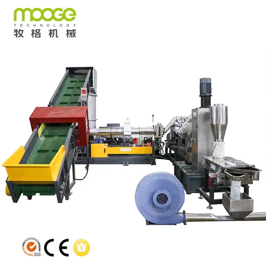 This plastic pelletizing granulating line which is suitable for many kinds waste plastic materials recycling and making pellet, such as PE/PP/HDPE/PLA Film,bags, PLA film, clean woven/nonwoven bag materials, etc. The film can be pressed in compressor and then be pelleted. And also has very developed design, makes sure this machine has a long working life and economical efficiency in using.You can choose use single stage or double stage pelletizing machine according to how clean of you material; also you can choose the cooling cutting system or die-face hot cutting system.