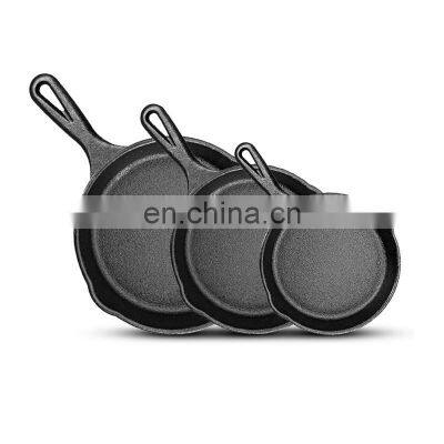 Products DescriptionCast iron cookware set vegetable oil skillet frying panCast iron vegetable oil skilletSize6",8",10"Diameter15cm ,20cm, 26cmunit weight0.8KG,1.4KG,2.3KGOne-piece molding handleThe handle is shaped in one with the body of the pot, and the shape is ergonomically designed for comfortable feelOil leak nozzleThe use of a healthy non-coated non-stick pot, with a leaking nozzle design to prevent soup, oil and other spills.With the 2 side spouts it is easy to pour out any liquids from inside the pan, leaving little cleanup.heavy duty cast iron collectionSeasoned skillet set is made from heavy-duty cast iron so heat is better retained than regular cookware, while also adding extrairon and flavor to your diet; Set of pans are a must-have for for kitchen.Flat bottom thickened pot bottom designThe bottom of the pan uses a flat-bottomed thickening design to store heat and cook ingredients evenly, making cooking moredelicious and easy to cook.Related ProductsCertificationsApplicationREADY RIGHT OUT OF THE BOX: pans are preseasoned for your convenience, however, it works best if you continue to oil your pan; When finished cooking, wash with hot water and a sponge or stiff brush (NOTE: Cast iron pans are not intended to be used in adishwasher)Packing & DeliverlyFactory IntroductionShowroomRuici Industry (Dalian) Co., Ltd was established in 2005 whose first workshop funded in 1984 named as santang Foundry. We engagein many kinds of metal products business.Most of them are OEM and ODM products made upon customer's requirements.Storage CapacityProduction ProcessManufacturing Technique