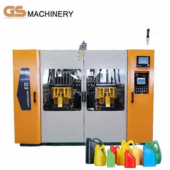 GS-5L-II double station machine is different from the single station machine in that it has one additional station with high-precision linear guide. The same as the single station machines, it can be used to produce a wide variety of materials, such as PE, PP, etc. The largest capacity of the product can be 5L, and its production capacity is 60 to 70% more than the single station machine. In accordance with different type of products, die heads can be changed to achieve multi-type production. Setting: