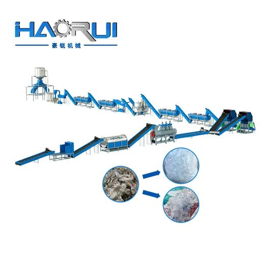 The Recycling line make PET flakes recycling from PET bottle to clean PET flakes.