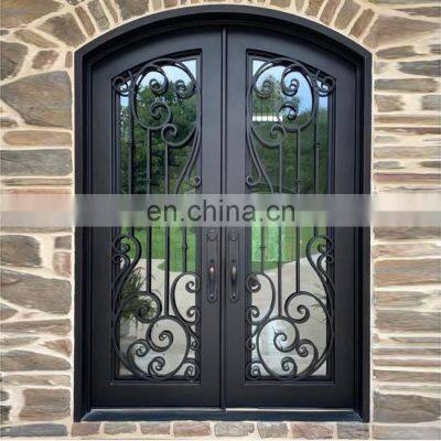 Namehouse entry big double glass arched eyebrow top black cast iron frame unique scrolls heavy duty front design wrought iron doorProduction timeReady in stock, can be arranged to ship out at onceDoor size72 inch width x 96 inch heightColorBA-16-1 Oil Rubbed BronzeMaterialWrought ironGlassDecorative Tempered Aquatex glassSurface FinishingPaintOpen MethodRight hand inward swingPositionvilla, apartment, hotel etc.Antirust WayGalvanizing(hot dip) or zinc spraying, antirust paintingManufacturer Warranty10 year part warranty, 5 year finish warranty, 1year glass warrantyQ1: Does all the hardware come with the door for easy installation? A: Pre assembled lock hole, hinges, latch, bolts, threshold, essential hardware included. Q2: When can it be shipped? A: It is in stock, can be shipped out at once. Help you save the production time. Q3: What shipping method will adopt? A: We ship out the door by sea, to the port closest to you. Or using your own agent isacceptable. Q4: What's the payment way and payment terms? A: Usually we use T/T, Western Union, Cash. You can also through Alibaba website topay it. 30~50% deposit before production and balance must be paid before shipping.>> Back to Home <<