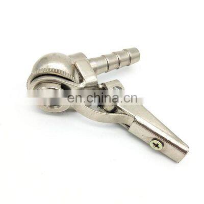 Product Description Auto Tire Repair Tools Tire Valve Connector Air Chuck AC-6 High quality,Easy to attach and remove Material: brass Color: chrome plated Weight:26g/pc Function: quick inflating Company Information FAQ Q1. What is your terms of packing?A: Generally, we pack our goods in transparent PP bag and carton box. If you have other requirement for example, the colorful box of packing, woven bag or bandage, please inform me before the delivery.Q2. What is your terms of payment?A: T/T 30% as deposit, and 70% before delivery. We'll show you the photos of the products and packages before you pay the balance.Q3. What is your terms of delivery?A: FOB Ningbo Port or deliver goods to your Chinese warehouse (your man arrange the rest delivery without any charges on my side)Q4. How about your delivery time?A: Generally, it will take 15 days after receiving your advance payment. The specific delivery time depends on the items and the quantity of your order.Q5. Can you produce according to the samples?A: Yes, we can produce by your samples or technical drawings. Also, we can build the molds and fixtures.Q6. What is your sample policy?A: We can supply the sample if we have ready-made parts in stock, but the customers have to pay the freight charge.Q7. Do you test all your goods before delivery?A: Yes, our test rate is 100% before the delivery.Q8: How do you make our business long-term and good relationship?A:1. We keep good quality and competitive price to ensure our customers benefit. 2. We regard every customer as our friend and we do business and make friends with them sincerely, no matter where they come from. We have been in service since 2000, Please buy with confidence!!!