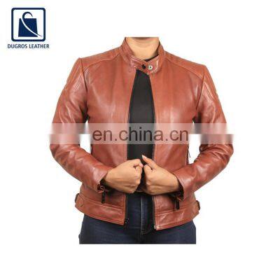 Product Description Top Selling Premium Luxurious Stylish Genuine Leather Men Biker Jacket from Trusted Supplier We are engaged in the manufacture, export and supply of a massive assemblage of Genuine Leather Jacket. Genuine Leather Jackets that are made using supreme quality leather obtained from our vendors. Vastly acknowledged for their lightweight and optimum finishing, these genuine leather jackets are massively demanded and can be availed at reasonable rates. WE CAN WORK FOR THE PRIVATE LABEL Specification Product NameGenuine Leather Jacket MaterialGenuine LeatherFittingsHigh BlackStitchingMatchingLining MaterialPolyester GenderFemale Closure Type Zipper Dimension (HXLXW) in cmS,M,L & XLColors AvailableCustomizePacking & ShippingAbout Us Dugros Leather India Pvt. Ltd., founded in 2006, is an ISO 9001:2015 certified and BSCI –compliant professional OEM/ODM manufacturer. We have been specialized in designing and manufacturing all kinds of genuine leather bags, wallets and accessories for over 15 years. We also have an in-house well equipped LWG certified tannery which processes raw skin to produce finished leather to cater our factories based on the customer’s requirement, thus keeping the quality of leather in control and offering very competitive prices. Other than leather, we also make bags in canvas, jute, nylon and PU. We have been cooperating with clients from Europe, North America, South America and Asia.Our 3 production units all located in Kolkata (India) with two of them in the leather hub of the city (Leather complex, “Bantalla”) along with an in-house tannery, with more than 500 professional and skilful workers, equipped with modern facilities and total production area of 10,000/sq. meters, our monthly capacity reaches 50,000 bags and 1,00,000 wallets.Over the past 15 years, due to the excellent quality, competitive price as well as fast customer service, Dugros has been well known as a reliable and capable supplier to many international group and brands. Our R&D department which is equipped with over 40 professional sample technicians that can create 200pcs new styles every month.Ever since our foundation, we have been focusing on strict quality control over the production to ensure the quality of our every delivery by implementing a ratio of 1QC/20 workers. Our leather/Hardware/Painting edge/Reinforcement/Lining have all passed eco-friendly tests by Intertek and Bureau Veritas.Reasonable prices, the best quality, and reliable service are the soul of Dugros. Trust us, we can work together to create a bright future. Certificates Our Services SAMPLE SERVICES We can replicate any design provided by you and as per your specimen sheet. After making the sample, we do prepare cost sheet and quote our best price based on the quantity. The lead time is 7 to 15 days, depending on the product. Sample prices charged will be refunded after we receive an order according to our MOQ. CUSTOMIZED SERVICES Customized logo can be printed. Sample orders are accepted. Quick response and fast delivery are guaranteed. Customers' designs are welcome. LOGO SERVICES Engraving Laser printing. Silk screen printing: used for simple logos. Colorful foil logos. Rubber sticker printing. UV printing (matte/glossy): used for special material printing. We have all these printing craft and can do as your requirement. AFTER-SALES SERVICES When you place an order with us, during production we will capture clear photos of your products so you can see them step by step. We can book container for you by our forwarder and calculate all kinds of costs during shipping and keep follow up of your goods. If our goods have any kind of problem or quality issue, you can contact us anytime and we will do our best to solve the issue. FAQ 1. Q. Can your factory make any leather goods? A. We have 15 years of expertise in producing leather men’s bag, ladies handbag, backpack, office bag, travel bag, wallets, credit card holders, passport covers, clutches, pouches, slings, key holders, Aprons, gloves, kitchen appliances etc. We also make bags in canvas, fabric, jute, PU. 2. Q. Are those products on your website all genuine leather? A. We primarily deal in genuine leather as we produce the leather ourselves in our in-house tannery. But we do also make goods out of canvas, jute, fabric and PU. 3. Q. What about your products, do they meet the European's environmental standards?A. We abide the EU regulations and meet the standards as we are an SA 8000, LWG Tanners, and ISO 9001:2015 - company. 4. Q. What payment method can you accept?A. PayPal, L/C, D/P, T/T, 30% ADVANCE PAYMENT payments for offline orders. 5. Q. What is your MOQ?A. Bags- 100-200 pcs per style per color. Wallets- 200-300 pcs style per color. Small accessories: 300-500 pcs per style per color. 6. Q. What about the lead time?A. 45-80 days depending on the product and quantity. 7. Q. How can I visit your factory? A. (a) OFFICE ADDRESS- 21E, Gorachand road Kolkata-700014 West Bengal, India. (b) FACTORY ADDRESS- zone no.8/plot 622 Kolkata leather complex Kolkata-743502 WestBengal, India.Get in Touch with Us