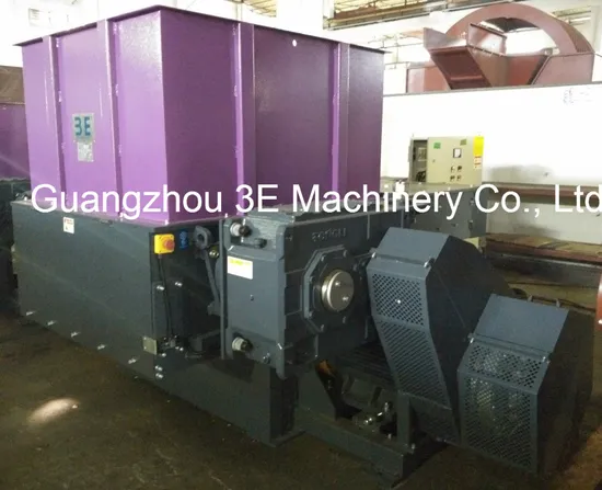 3E MACHINERY's (WT4080/ WT40100/ WT40120/ WT40150) Single shaft shredder is a widely used type of recycling machine. It's an ideal machine widely used in plastics, paper, wood, fiber, rubber, organic waste and non metallic materials. It consists of a single solid shaft with square blades bolted into it. This shaft rotates at about 74-83 RPM, depending on the model, and these blades pass through a bed knife on the base of the cutting chamber. A hydraulic ram continually pushes the material against the shaft of the shredder for continuous cutting. It is almost always used with a screen, which retains the material in the cutting chamber to reduce the material even further. And the standard cut on a single shaft shredder is 25-40mm.