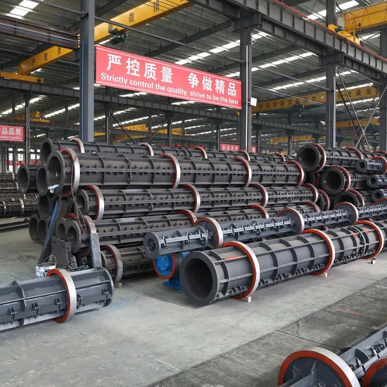 7. Electrical system: Due to the deformation of individual centrifugalmolds(pole/pipe/pile mold) or irregular mold clamping, mold jumping or mold flying may occur during high-speed centrifugation, which is a major safety production hazard. In response to this situation, our company has developed an anti-jumping mode frequency conversion cabinet. The system has two functions: automatic frequency reduction and manual frequency reduction. The automatic frequency reduction can be automatically realized three times, and the corresponding centrifugal time can be increased for each frequency reduction. The basic frequency can be set according to different types of molds, and the current percentage can be monitored. In the phase of raising the speed, the acceleration time is superimposed to ensure that the raising speed is more balanced. At the same time, users can also select the energy feedback unit. The energy feedback unit automatically detects the DC bus voltage of the frequency converter, reverses the DC voltage of the DC link of the frequency converter into the AC voltage with the same frequency and phase as the grid voltage, and is connected to the AC grid after multiple noise filtering links, so as to achieve the purpose of energy feedback to the grid, The electric energy fed back to the power grid reaches more than 95% of the power generation energy, effectively saving electric energy.