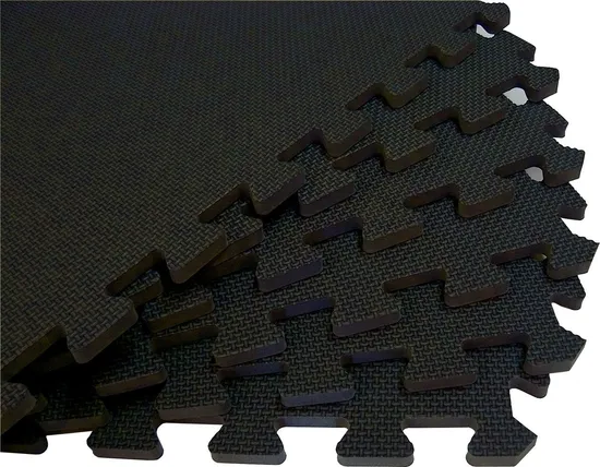 These interlocking EVA floor tiles are the perfect floor protection in any home gym, garage, basement, or kids playroom.