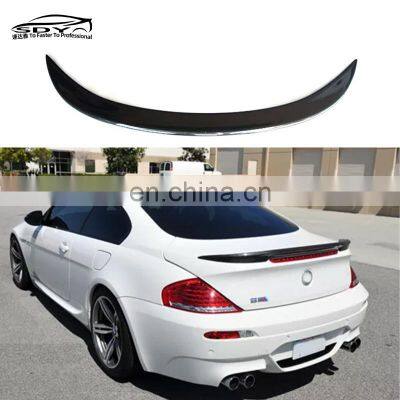 Products DescriptionKey attributesProduct IDB10-52Car MakeFor BMW 6 Series E63 E64 M6Year2006-2010PositionRear SpoilerMaterialCarbon FiberSize154X45X17 cmProcessVaccum Bagging/Hand LayerQualityHigh-QualityPlace of OriginGuangzhou, GuangdongCustomized demandSupport customized requirementsODM/OEMAvailableProduct photos and installation effectsCompany Profile Guangzhou fast Daya auto supplies trading Co., LTD. Its factory was established in 2014, located in Guangzhou Guangyuan auto parts City Guangzhou Guangyuan East Road No. 1881. After years of development, the company has owned upstream and downstream channels including factories, warehousing, logistics, sales, and about 100 employees. Its products are exported to Southeast Asia, South Asia, the Middle East, South America, Europe and other countries, well received by customers. We not only provide finished product sales, but also provide custom production, design services, packaging customization. We hope to establish long-term and stable cooperative relations with our customers.Our AdvantagesProduct packagingFAQQ: What are your payment methods?A:All the accepted methods by , this includes T/T,D/P D/A,Credit Card,PayPal,Cash.Q: When will my order ship after purchase and how long does it take?A:Generally , shipping by express and by air will take about 6 -10 days ;shipping by sea need about 30days.Q: What is your sample policy?A: We can supply the sample if we have ready parts in stock, but pls show me your company's information.Q: What is your terms of packing?A: Usually we will package the goods by carton and wooden support.It will be allowed to sending oversea.We will also pack according to your requirements.Q: How can we guarantee quality?A: Shipment inspection quality, support video image verification.Q: How can I choose it correctly?A: Please provide your details, such as car model type/year,product names, colour, and so on,if you have any other problems,it doesn't matter,connect with us and we will do our best to help you to choose the best one which is the most appropriate for you.