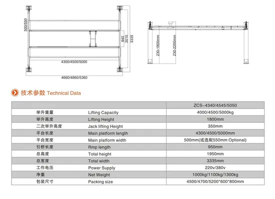 | Platform Height | 4300/4500/5000mm | Approach Height | 1200mm |