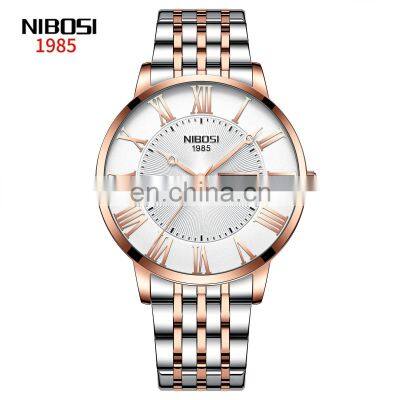 · Brand Name: NIBOSI· Band Length: 220cm· Style: Dress· Movement: QUARTZ· Water Resistance Depth: 3Bar· Clasp Type: Push Button Hidden Clasp· Case Material: Stainless Steel· Case Thickness: 10.8mm· Dial Window Material Type: Hardlex· Item Type: Quartz Wristwatches· Boxes & Cases Material: Paper· Band Material Type: Stainless Steel· Dial Diameter: 42.5mm· Model Number: NO.2527· Band Width: 20mm· Case Shape: ROUND· Feature: Complete Calendar· Feature: Shock Resistant· Feature: Luminous Hands· Feature: Rattrapante· Feature: Stop Watch· Feature: Anti-magnetic· Feature: Auto Date· Feature: Chronograph· Feature: Luminous· Feature: Perpetual Calendar· Color: Black / Green / Blue / Gold / Silver· Gender: Male / Man / Boy / Unisex /Masculino· Watch Style: Dress / Business / Casual / Sports· Watch Audience: Freelancer/ Businessman / Students / Worker / Artist· Special features: 1/10 Chronograph; Luminous Hand; Waterproof· Watch Movement: Analog quartz· Functions: Chronograph / Calendar Date· Item weight: 97g· Tipo de material de la banda: Cuero / acero inoxidable· Tipo de artculo: Relojes de pulsera de cuarzoDetailed ImagesBest SellingCompany IntroductionShenzhen South America Watch Co., Ltd Shenzhen South America Watch Co., Ltd is a top professional watch manufacturer in SHENZHEN CHINA.In factory there are 100 watchskilled workers, 20 QC, 2 designers, 10 sales, 2 purchasers,and few administrators. Mainly product is watch,such as quartz watch,automatic watch, men's watch, lady watch made from stainless steel or alloy. the requires depend on you. Our NIBOSI branded is registered in Swiss, US and China. And our own brand NIBOSI watches for wholesale annual. Very good competitive price. Delivered Duty Paid drop shipping service.CertificationsProduct packagingCustomize package as per your request:Packing standardFree simple packing: pc/opp bag, 20 bags/box, 10 boxes/ctnCustomize gift packing: 1 piece in one box with pillow protect.According to client's request.Shipping cost can be included into cost:We can ship via DHL, FedEx, UPS, EMS, TNT, Aramex E-packet etc.Our Service24 Hours Offer Product ConsultingAccept OEM order, custom your LOGO to create your own brand.Variety watches styles in STOCKS for you choose to WHOLESALE.If you are a online shop, we can offer you ONE STOP DROP SHIPPING service.FAQ1. Q:What's your best price for this watch? quartz watch| mens fashion watch| couple watch| fitness watch| gold watchA: We will quote you best price according to your quantity&requirement . fossil watch men| pilot watch2. Q:What's your MOQ? Can I mix styles and colors? slim stone quartz watch| chrono diamond watch| moon watch| ultra thin watchA: MOQ is 300pcs per model. you can mix colors in one styles ;but for stocks , you can mix styles and colors3. Q:What's the delivery time? unisex watch| chronograph steel watch| new design fashion girls watch| watch chronograph| watchfashionA: If stocked , we can ship it within 3 days after receiving your payment. For custom order, the production time is 35-40 days after all details confirmed. 4. Q:What's your packing? gold stainless steel watch| watches for women luxury| 2018 luxury quartz oem men handcraftedA:Our usual packing for watch is opp bag, we can also supply you with different kinds of watch box.5. Q:Can we custom our own logo on the watch? A: Yes, you can. we support logo printed and logo stamped. stainless steel watches oem|rose gold stainless steel watch women6. Q:What about the warranty? watch automatic movement watch| watches men wrist| automatic 45mm watch| wood watchA: China movement warranty is 1 year, japan movement warranty 3 years, swiss movement warranty 5 years.7. Q:What payment term? unisex watches swiss| wrist watch women| wrist watch women| steel watch| bauhaus watchA: 30% deposit by T/T, 100% L/C, we also accept paypal, western union,cash.custom watch|watches men luxury brand automatic|mens luxury watch|watch men top|watch oem|automatic watches| watches minimalisticTo avoid any subsequent trouble regarding quality issue, we suggest that you check the watches once you receive them. If there isany transport damaged or quality issue, don't forget take the detailed pictures and contact us as soon as possible,we willproperly deal with it, make sure your loss to reduce to the smallest .We will try our best to provide the best service for you and keep a good business relationship.Thank you for your inquiry inadvance.