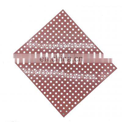 Interior Decorative Aluminum Perforated Metal Sheet for Ceiling TilesProduct DescriptionPerforated metal ceilings * Proper ventilation and air flow to meet health and sanitation requirements * Optimal acoustics for environmental noise reduction * Washable, baked-on enamel finish for easy cleaning * Ease of installation via instructions and pre-numbered parts * Aesthetically attractive ceilingProduct NameInterior Decorative Aluminum Perforated Metal Sheet for Ceiling TilesMaterialAluminum, stainless sheet, black steel, galvanized steel, copper/brass, etc.Hole ShapeRound, Square, Hexagonal, Cross, Triangular, Oblong, etc.Arrangement of HolesStraight; Side Stagger; End StaggerThickness≦ Hole Diameters (to make sure perfect holes)PitchCustomized by buyerSurface TreatmentPowder coating, PVDF Coating, Galvanization, Anodizing, etc.Packing Methods- Packing in rolls with carton. - Packing in pieces with wooden/steel pallet.Quality ControlISO Certificate; SGS CertificateAfter-sale ServiceProduct test report, online follow up.Order No.Thickness(mm)Hole(mm)Pitch(mm)DJ-PS-10.50.51.25DJ-PS-20.80.81.75DJ-PS-30.81.53DJ-PS-40.824DJ-PS-50.835DJ-PS-60.847DJ-PS-70.858DJ-PS-80.869DJ-PS-90.8812DJ-PS-100.81016...............customizedcustomizedcustomizedNote: These are only some parts of our products, not all. If you want other specifications, please feel free to contact me. Our factory can customize the specification as your requirements.You May LikeProducts Pictures ShowPerforated metal is great for diffusing sound, soundproofing and reducing acoustic emissions. When installed along a ceiling, perforated metal can help prevent echoes. It can be used as a protective covering for acoustical material that is designed to either absorb or reflect sound or scatter it in a specific way.Perforated metal mesh can play an important role when designing metal suspended ceilings to enhance aesthetics and acoustics. Thepores may be so small and so tightly packed that they become almost microscopic, or so large and widely distributed that theybecome a distinct visual element.Perforated metal mesh has a wide range of uses, not only can be used for highways, railways, subways and other transportation municipal facilities in the environmental noise control barrier; It can also be used for building ceiling, stairs, balconies, environmentally friendly tables and chairs of the exquisite decorative hole plate; It can also be used for protective cover of mechanical equipment, gorgeous sound box net cover, stainless steel fruit blue kitchen utensils, food cover and so on, as well as the shelves of shopping malls, decorative display tables, etc..Why Choose UsEnterprise introductionAnping Dongjie Wire Mesh Products Co.,Ltd., located in Anping, China is a specialized manufacturer for the development, design and production of expanded metal mesh, perforated metal mesh, decorative wire mesh and stamping parts for decades. As always stuck into "Quality Proves Strength, Details Reach to Success", Dongjie achieves highly acclaim in the old and new customers.Fully equippedOver the past 20 years, the company has continuously expanded its market and updated its equipment. The company not only has large aluminum mesh production equipment, there are small hole tensile plate mesh machines, as well as small and medium-sized plate mesh machines. At the same time, the company has a large punch, roll welding machine, bending equipment and just mass production of large gantry punching equipment.Raw material quality assuranceDongjie has adopted ISO9001:2008 Quality System Certificate, SGS Quality System Certificate and modern management system. The company adheres to factory control standards superior to domestic and international standards to meet customers' expectations and requirements for product quality.ExhibitionOur products are sold to more than 200 countries and regions all over the world, covering five continents. At the same time, our company has participated in many exhibitions and reached cooperation with domestic and foreign customers.FeedbackWith the tenet of "win customers by quality, develop market by reputation", the company has been well received by the industry and customers at home and abroad.Productive ProcessService principleUnderstanding the needs of customers, controlling the quality process strictly, tracking the quality timely, dealing with the quality objections quickly.CertificationsPacking & DeliveryBubble filmReduce the friction between the products and the wooden cases during the transportation process, and prevent the possible damage and color loss caused by friction.Wooden caseA special wooden case for export products to prevent products from being damaged by extrusion, falling and loss during transportation.Anti-fouling filmPrevent dust from entering the wooden case and ensure the cleanliness of the wooden case; Waterproof, to ensure that the wooden case will not water, prevent the damage of the goods.Packing processDelivery methodQuantity(sqm)Delivery TimeShipping WayShipping Time1-2993-5 days after received your paymentDoor to door by express5-10 days300-4993-5 days after received your paymentDoor to door by express5-10 days500-100010-15 days after received your paymentShipping by airShipping by sea20-30 daysFAQQ1:How to make an inquiry about Perforated Metal Mesh? A1:You need to provide material, hole size, thickness, sheet size and the quantity to ask for an offer. You can also indicate if you have any special requirements. Q2:Could you provide a free sample? A2:Yes, we can provide a free sample in half A4 size together with our catalogue. But the courier charge will be on your side. We'll send back the courier charge if you make an order. Q3:How is your Payment Term? A3:Generally, our payment term is T/T 30% in advance and the balance 70% before shipping. Other payment terms we can also discuss. Q4:How is your delivery time? A4:The delivery time is usually determined by the technology and quantity of the produ
