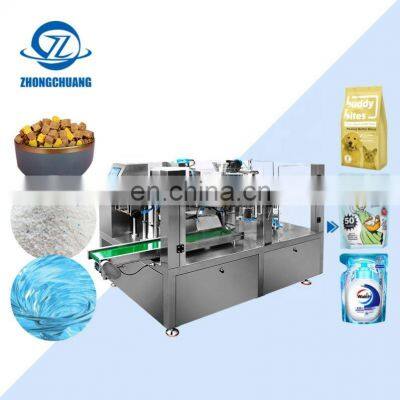 Product Description Model No.ZC-D200Product Namemini doypack baby food spout pouch spoon packing machine granuleFunction Bag-feeding, Filling, Wrapping, Sealing Voltage380V 50/60hzPacking Speed 25-60 bags /minsPacking Bag SizeL: 100-350mmW : 60-200mmApplicable IndustryFood, Drink,Commodity, Medical, Chemical etcSuitable Bag TypeStand-up pouch, Zipper Bag, Film, M pouch etcDimension (L*W*H)5258*3610*3655mmMachine Surface material #304-Stainless steel Gross Weight 1300KGAir Compressed air consemed≤0.6m³ / minAccuracy ±1g (≤100g) / ± 1%( >100g) according to materialWarranty 1 year Customer Evaluation Company Information