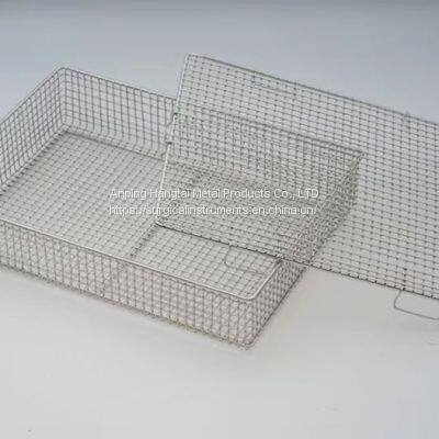 Product Description Product information:For instruments Washing, Disinfections, Sterilization, Storage & Handling. Available in different sizes and designs. Separate Lids are available with locks. Baskets are stackable. Burr free smooth finish. Electrolyte Polished. Top and bottom frame wire diameter 6 mm. Wire mesh with opening squire 4.2 mm. The wire diameter is 0.9mm. Available in drop handle and folding handles.