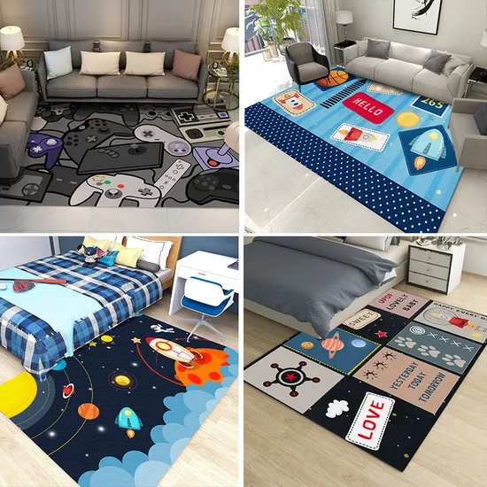 Children Mat Flannel Non-Slip Baby Rectangle Bedroom Living Room Kids Play Rug Detailed Photos
