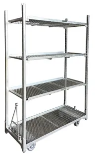 Trolley shelves come in your choice of Poplar Plywood (6mm), Birch Plywood (6mm), Solid PVC (6mm), Wire Mesh, Expanded Metal, or a Solid Metal Galvanized Plate,post with pregalvanized plate 1.8mm or hot strip steel 2.5mm-2.75mm ,HDG finish treatment . All shelves are easily adjustable and can be moved to accommodate any plant height and configuration. Hitch Pin Bases add extra convenience and make linking Trolleys together fast and easy. Trolley Casters come in many options in both fixed and swivel style. This makes moving and rearranging trolleys quick and easy. Casters are available in different materials( PP PA Rubber TPR PU) , tread widths and load capacities. Breaking systems are also available. We also accept customized from size ,construction and logo Label, as well as Ground brake mechanism and so on .Finish treatment electric plating Hot dipped galvanized and Powder coating options .