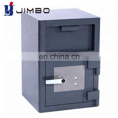 Products DescriptionDrop safe*Product NameJimbo steel security cash front loading depository safe with drop slot*Brand NameJimbo*MateritalHigh quality cold rolled steel sheet Q235*Door Thickness10 mm*Body Thickness3 mm *LockElectronic Digital Lock*HandleBrushed solid steel handle*CertificateJIS, CE , RoSH , SGS , ISO 1182*Available colorWhite , Black , body and door can be in different colors*Packing5 layer standard export carton with thickened foam*SurfaceDurable electrostatic powder coating*Main productsFireproof safe, Bulglarproof safe, Home safe ,Vault door, Watch winder safe, Hotel safe box, Steel Lockers, Filing CabinetsRecommend ProductsCompany ProfileFoshan jimbosafe Co.,Ltd established in 2012, exporting our safe box to more than 118 Countries with over 10 years history . Located in Foshan,Guangdong, Jimbo owns 5,000m2 Modern Workshop, 50 Skilled workers,3 Reliable QC and 10 production machines and passed 4 certification (CE, ROHS, SGS, ISO). Through our experienced sales team, we finish 50,000,000.00+RMB turnover per year and keep growing.As Assessed Supplier by Alibaba, we hope can cooperate with you!Our TeamProduct packagingFAQProduction relatedIf you have any other questions, we would be more than happy to answer them for you. Please contact us below:Mrs. AnnEmail: annie@jimbosafe.com / Jessica@jimbosafe.com / sales01@jimbosafe.comMob & Wechat & WhatsAPP ::+861666567569Q: Do you provide samples?A: We can provide a sample with freight and handling charges at your expense.Q: How do you send your samples?A: We usually send via international couriers such as DHL, FedEx or UPS. We can also work with you if you have other alternative arrangements.Q: What is your lead time? A: Our production lead time is typically between 25 to 45 days from receiving payment, depending on chosen items, quantities and specific requirements. We can have off the shelf goods ready to be shipped in 5 to 10 days if there are available stock and no change request.Q: Is there any warranty offered for the product?A: A two-year Limited free-warranty is offered.Q: What are your payment terms?A: We can work with L/C or 30% deposit upon ordering and remaining balance prior to shipping of products. We can provide photos of finished goods and also accept on site final inspection.
