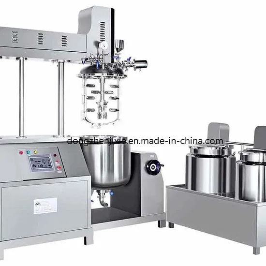 Product DescriptionDZJX Simple operation automatic homogenizing elevator customizable stainless steel mixing tank homogenizer 1. The machine has triple blender, hydraulic lift cover, high-speed homogeneity blender (Speed is 0-3500r/min, frequency speed regulation) and low-speed scraper blender (Speed is 0-40r/min, frequency speed regulation). Fast-cutting vortex emulsification blender is used in the homogenizer part, which can scrape in a low speed and automatically blend and snuggle up to the bottom and wall of boiler. The machine draws powder material by the way of vacuum in order to prevent the powder flying. 2. The whole working procedure is operated in the condition of vacuum in order to prevent the material coming into being bubble after high-speed blending and reach the request of sanitation and asepsis. CIP cleaning system is equipped in this system. The contact part of vessel and material is made from SUS316L material. Mirror finish of the inside surface is 300EMSH. 3. In order to ensure the stabilization of the control, the vacuum pump is the products of Germany Siemens Company, the button is produced by Japan Fuji Company, the transducer is the product of Japan Matsushita Electric Industries and the electro-control part is the product of Siemens Company. The machine is made completely according to the GMP request, which is the most advanced and most perfect cream production equipment. 4. The machine is specially designed adopting advanced technology of oversea according to the cosmetic and ointment production technology. The machine is made up of pre-treatment boiler, vacuum emulsification blending boiler, vacuum pump, hydraulic system and worktable. 5. The machine has easy operation, steady capability, good homogeneity, high efficiency, reasonable structure, small volume and high automation level and easily clean.https://dongzhenjixie.en.made-in-china.com/contact-info.htmProduct Parameters