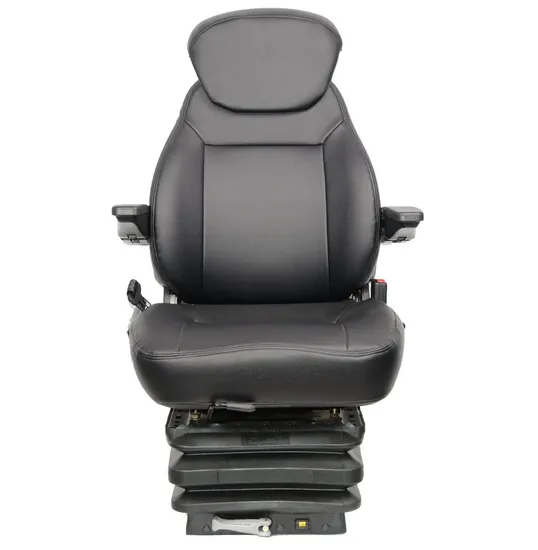 Product DescriptionTechnical details* Mechanical sprung seat* Extra strong scissor suspension.* Backrest adjustable and foldable.* suspension Adjustable height to 3 different positions.* Height adjustment: 60 mm.* Height from base plate to seat cushion top edge 310 mm -370 mm* Suspension travel: 80 mm.* Weight adjustment: 50 to 130 kg.* Longitudinal adjustment 176 mm,each step 16mm.* Adjustable back extension down 80°.* Armrests can be tilted - height adjustable and folded.* Highly durable faux leather cover.* Interchangeable covers and pads* Lap belt mounting points according to DIN standard.* Seat pad width: 525 mm.* Extra thick padding.* Width with armrests: 615 mm.* Mechanical lumbar support.* Retractable seat belt.* Contains Operator pressure sensor.- *Safe, comfortable and durable* Highly durable faux leather cover.Made of firm steel plate and High rebound polyurethane foam.