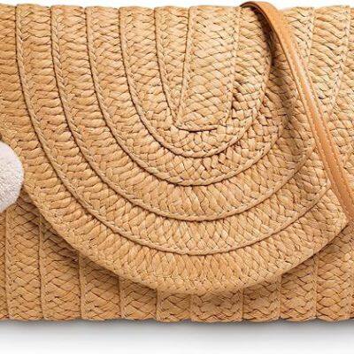 【Straw Clutch tote Dimension】11.0"(L) x 8.27"(H), the length of shoulder strap is 37.8"(96cm), handle length is 5.12"(13cm. The buckle is a magnetized buckle that is easy to open and close. It has enough space for your travel and daily necessities such as wallet, glasses, cell phone, cosmetics, cards, and your other essentials. High quality detachable shoulder strap.The strap length is Adjustable.