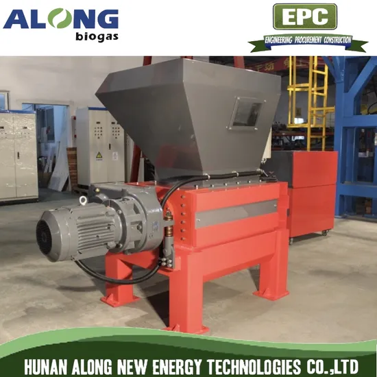 Structural characteristics: Feeding hopper. Special design of the feed hopper could prevent material splash when working. Equipped with large feed port, convenient for forklift or conveyor to feed. Specially designed hopper shape to meet the special needs and to ensure continuous feeding, simple operation, without any manual operation. Rotor. The strong durable rotor surface is concave designed according to different types of feedstock. Two-side replaceable rotary knives are installed on a special seat. Rotor bearing. The solid bearing block is mounted outside of machine, separate from the crushing chamber to prevent invasion of impurities, prolong machine life-time and reduce cost of maintenance. Screen. The screen for sieving is mounted under rotor, its aperture is designed in accordance with the solid size after shredded as required(10~40mm). The hinged sieve frame facilitates the disassembly, the replacement is easy to operate, or the screen is not required. Driving device. The motor and gearbox are linked by helical gears, driven by a large gearbox mounted on the top of spindle.