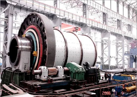 The ball mill is a horizontal rotating equipment transmitted by the outer gear. The materials are transferred to the grinding chamber through the quill shaft uniformly. There are ladder liners and ripple liners and different specifications of steel balls in the chamber. The centrifugal force caused by rotation of barrel brings the steel balls to a certain height, then impacting and grinding the materials. The grinding materials are discharged through the discharging board, thus the grinding process is finished.