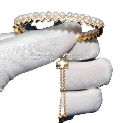 This material is S925 sterling silver zircon pearl fashion bracelet for women with gold plating.