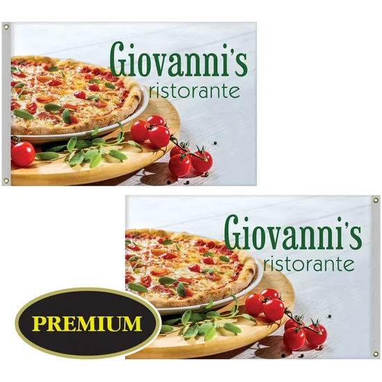Product Description 4' x 6' Double Sided Digitally Printed Knitted Polyester Flags Go with high profile advertising that you can put to work in a variety of promotional settings with this double sided knit polyester flag. These custom knitted flags are digitally printed using full color process imprinting for the most vibrant, high-profile results. They're created using only the best UV treated inks and PMS coated colors. The flags are finished with a canvas heading and brass grommets and are fully hemmed on all sides.