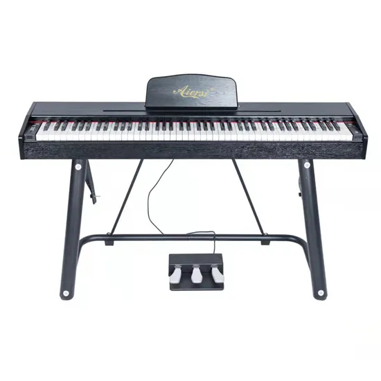 Appearance: simple vertical style, no cover design, beautiful and generous.Source: french DREAM source, built-in 88songs, 100 rhythms, 128 timbres.Functions: superimposed sound effect, keyboard split, digital sound effect,built-in timbre, mathematical function, metronome, real-time recording,modulation, toning function, comprehensive chord, MP3 playback.