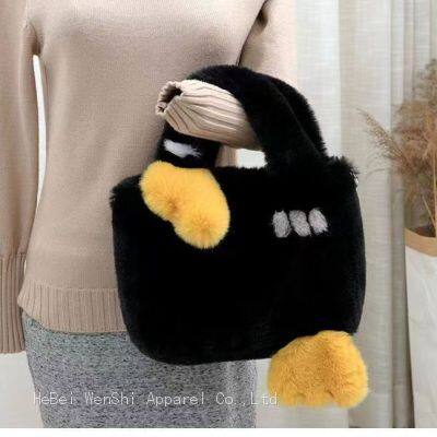 34Cute plush bag female sweet student handbag girl Tote bag niche single shoulder oblique cross bag Hairy hot large capacity female bag