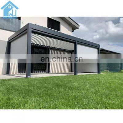 Product NameModern design bioclimatic motorized aluminium louvered pergolaMaterials Details1,Post: aluminum alloy 6063 T5 2,Blades : aluminum alloy 6005 T5 3,Beams: aluminum alloy 6063 T5 4,Gutter :100x100x2mm colors can be customizedControl wayMotorized/ManualFunctionWaterproof ,sunshade,windproof ,snowproof, house space extendingApplicationVilla,balcony ,garden ,backyard ,roof ,restaurant,decking ,swimming pool and so onWind Resistant180-220 KM/HSnow Loading60-100cmSizePopular standard size:3x3x2.5、4x3x2.5、5x3x2.5、6x3x2.5 or can be customizedOther related materialsSide screen/curtains, side shutter ,LED lights,heater ,fans,glass doors,outdoor furnitureInstallationWe will provide very detailed drawing and video for the installationOthers1.MOQ:1 set, we welcome small order 2.Production: we are factory , we can provide 10-15days fast production time 3.Warrenty:10 years 4.Color:White, Grey, Black, or customized colors availableFAQQ1. Is this aluminium louvered pergola easy to install?A: We have the assembly manual instruction specifically made according to your project site. It's a DIY product designed to be easily assembled and we can provide installation video.Q2. How long is your products' warranty?A: All our products have 10 years warranty.Q3:How to guarantee the quality of the products?A:We have our own QC team to control the products quality for all our clients'orders before loading.Q4. How can i get a price of needed aluminium louvered pergola?A: Please give the exactly size and quantity of your required aluminium louvered pergola. We can give you a detail quotation and free design solution based on your requirements.Q5.I am a small wholesaler, do you accept small order?A: It's no problem is you are a small wholesaler, we would like to grow up with you together and our MOQ is 1 set.Q6. Is my first time to export from China, what if i have no experience?A: Don t worry, we have very professional sale will guide for and we can provide one stop solution including deliver the door to your home address with customs.Q7. What kind of payment terms would you accept?A: We usually accept T/T, L/C, Western Union, etc. If you prefer other payments terms, please feel free to discuss with us.Q8. What if i meet the problem after installing and using this aluminium louvered pergola?A: As our principle is our business had been built on hoes & backed by customer service.we are verified supplier in Alibaba. com and our can provide 10 years warranty, so if you meet any problem for using thisaluminium louvered pergola,welcome to contact.