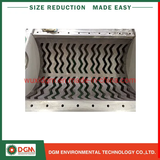 Descriptions The DGF Series -specify for Film and Bottle Granulator has a centrally hinged two-piece cutting chamber with a robust welded steel construction, with the upper and lower sections of the housing meeting horizontally. Reversible stator knives with double cutting edges are fitted as single elements to the lower section of the housing, allowing multiple re-sharpening and adjustment of the stator knives. There is a hinged screen cradle and hinged door for easy screen access.