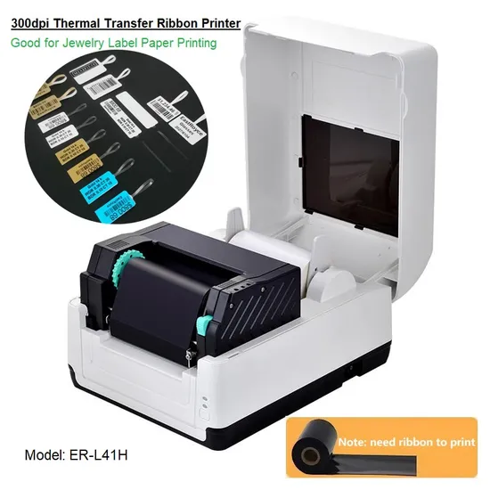 ( ER-L41H ) 300dpi High Resolution Barcode Printer 4-Inch Thermal Transfer Ribbon Printer for Jewelry Label Printing