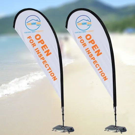 Key Features: Teardrop shape for eye-catching display Made from durable polyester material Customizable design to suit your brand or message Lightweight and easy to assemble Perfect for both indoor and outdoor use Product Specifications: Category: Beach Flag Flag/Banner Material: Polyester Shape: Customized Available Sizes: Our printing machines, including the big Mimaki machine that can print up to 200cm in width, allow us to offer a variety of sizes. Our standard flag sizes include 60x90cm, 100x150cm, 120x130cm, 150x400cm, and 200x300cm. We also print different sizes of beach flags to suit your specific requirements.