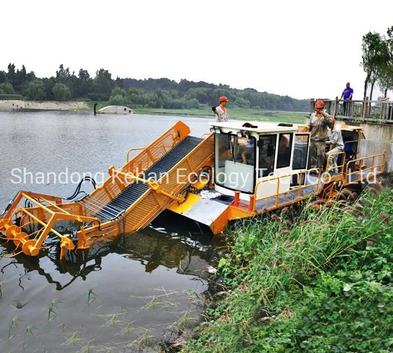 KEHAN Automatic Algae Salvage Ship / Seagrass Collecting Harvester/Seabed Plant Harvesting Machine is the most professional tool to remove aquatic plant from river, lake creeks or some other inland waterways.It's equipped with horizental cutting knife to cut the grass in the water. And the vertical knife to cut the grass connections. With the aquatic weed harvester going forward and the running converyor belt, the cut aquatic weed can be transported to the storage cabin.When the storage cabin is full, the machine will sail to the bank or some barges to discharge the aquatic plant out.One KEHAN AQUATIC WEED HARVESTER is at least 10 times harvesting efficiency than by hand.Only one worker is enough to operate the machine!