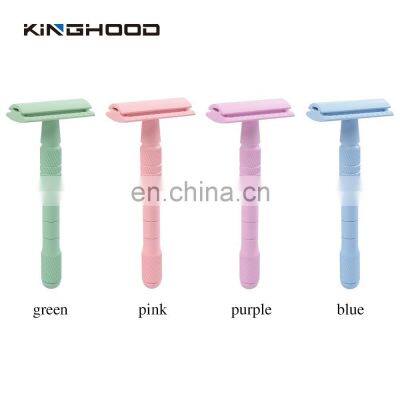 Products DescriptionDescription:Professional Reusable Double Edge Razors Adjustable Safety RazorSize11.2cmx4.3cmMaterial:Razor head: Zinc alloyRazor handle: BrassColor available:Rose gold, Gold, Black, Silver, customizedPacking available:white box, gift boxPayment30% deposit,70% againest faxed document. T/T,Paypal....ShipmentDHL,FedEx,UPS....By air and sea are availableWhy Choose UsFAQQ1:Are you a factory or trading company?A:Absolutely we are a factory with more than 12 years production experience.Q2:Can you customized my own brand or designs?A:We're the direct manufacture and it's available to customize your preferable design and brand & Logo.Just please provide your full requirement and documents to our sales, then they will give you the professional suggestions.Q3: Can you do OME?A:Yes,we can do OME products. It's no problem.Q4:May I ask for a free sample?A:We are glad to send you a free sample if we have the stock, but it is your turns to pay the courier fee.Q5:What is the minimum order quantity of your product?A:The MOQ of mirror is 3000pcs,For the razor 10pcs.