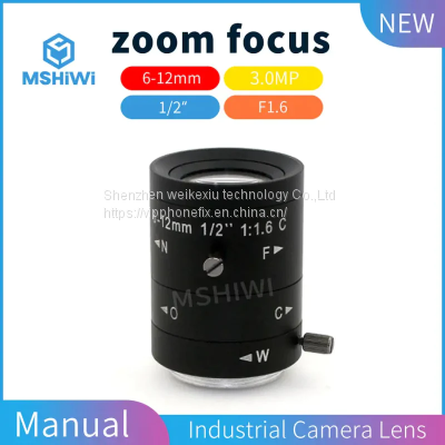 1. 6-12mm F1.6 1/1.2 indutrial camera fixed focus lens is high-quality and high-performance.