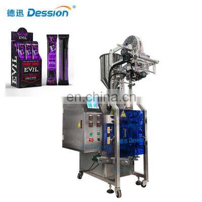 automatic high speed packing machine liquid soap packing machine filling machine liquidProduct DescriptionDession liquid packing machine is suitable for the packaging of various liquid and sauces, such as soup,edible oil,liquid medicine,cream,seasoning sauce,honey,shampoo and shower gel etc.According to customer needs,the bag types can be changed:back seal, three sides seal, four side seal.1. The section where the material contact is stainless steel as the body of machine is optional for complete or partial stainless steel and all out equipments have passed the CE Standard.2. Optional English or other languages screen display, easy and simple operation. 3. High-sensitivity photoelectric color tracing and digital input of cutting position get more accuracy.4. Packaging speed and length of bags can be set to some extent without further adjustment and parts changing packaging speed and length of bags can be set to some extent without further adjustment and parts changing. 5. Bag-making, filling, sealing, cutting, counting can be achieved automatically and straightly. 6. Bag-making equipment can be changed according to specific requirement of customers and products.Model NO.DS-200YMeasuringLiquid Filling PumpBag ShapeBack Sealing / 3 Sides Sealing / 4 Sides SealingPacking Speed80-120 bags/minRoll WidthMax.200mmBag Length30~180 mmBag Width15~100 mmMachine SizeL)640*W)700*H)1580mmMachine Weight300kgPower220V,50HZ,1.2KVAEasy Control Touch ScreenLanguage: Standard English and Chinese. Any language can be customized.PLC: Imported PLC microcomputer with interface and frequency control enables bag parameter setting more convenient and easier. Film RollerThe film can be replaced easily on the film roller.Various films adaptable: OPP/CPP,OPP/CE,MST/PE/PET/PE.Mechanicalliquid pumpthe filling weight is adjusted,the texture of the machine is #304 stainless steel for the material contact parts.It is safe andmeets with the GMP standard.According to the viscosity of the filled liquid, you can choose to replace the pneumatic pump.Bag Former#304 stainless steel bag former is for shaping the film into a bag.Different bag width needs different bag former.Durable Sealing Cutting BladesHigh speed of fine and clean cutting and sealing bags.Positioned stop function avoides sticking blades and wasting materials.According to customer needs,the bag types can be changed:back seal, three sides seal, four side seal.According to your needs, you can choose to replace or add the following configuration. For example, 3 sides sealing device, 4 sides sealing device, linking bag device, gas-filled device, easy tearing device.According to the consistency of the filling material, add a heating and stirring device or use the mechanical pump.If you want to know more about the machine, please contact me!!!SALES MANAGER: Mobile:Whatsapp / Wechat: Related ProductsOur CompanyCertificationsPacking & DeliveryPayment1.T/T and Western Union are accepted2.30% deposit before production and 70% balance before shipment3.All banking charges outside China are on buyersShipping1.Upon receipt of payment , delivery date will be in 15-30 working days,2.By Air, by Sea or by Express (DHL etc)3.Shipment cost will depend on the destination, shipment way and the weight of the goodsFAQQ1:Do you have manual or operation video for us to know more about the machine? Yes, not only manual or operation video, 3D drawing also available to make as per your design,also the video we can make of testing the material from our packaging machine if your packing goods easier for us to find from our local market. Q2:How can I trust you for the first time business ?Please note our above business license and certificate. And if you don't trust us, then we can use Alibaba trade assurance service, guarantee your money, and guarantee your machine's on-time delivery and machine quality.Q3:Is engineer available to serve oversea?Yes, but the travel fee is paid by you. So actually to save your cost, we will send you a video of full details machine installation and assist you till the end.Q4:How can we make sure about the machine quality after we put the order?Before delivery, we will send you the pictures and videos for you to check the quality, and also you can arrange for quality checking by yourself or by your contacts in China.Q5:Will you provides the door to door service?Yes. Please offer us your final destination, we will check with our agent to see if it available, and most of the area is ok for us to clearing and sending in your countries.Our Service