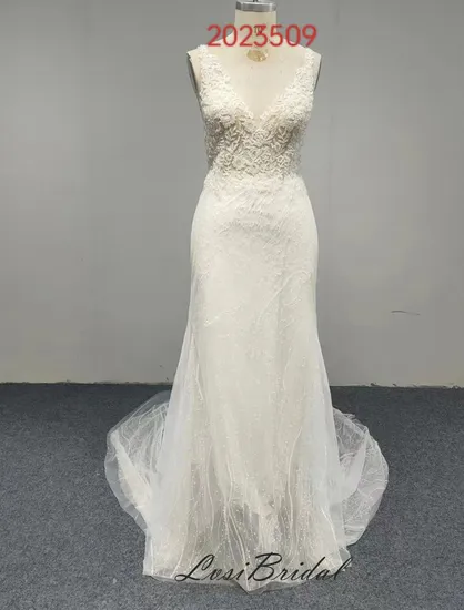 2023509 Front and Back V Neckline with Illusion Body with Heavy Beads Wedding Dress Noble and Elegant Mermaid Bridal Dress for Europe and American Style
