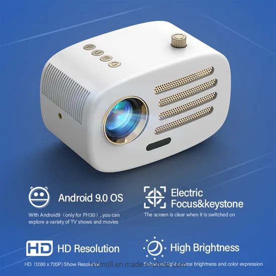 AUN PH30 Mini Portable Projector HD Home Theater Projectors Gamer Cinema Electric Focus Android Projector for Smart Phones (EU Plug) - White Android 9.0 OS: With Android9 (only for PH30), you can explore a variety of TV shows and movies Electric Focus & Keystone: The screen is dear when it is switched on HD Resolution: HD (1280 x 720P) Show Resolution High Brightness: Enhanced light source brightness and color expression Compact and Lightweight: Mini Size 175x10x102mm, performance remains strong, bringing an extraordinary user experience Specifications: