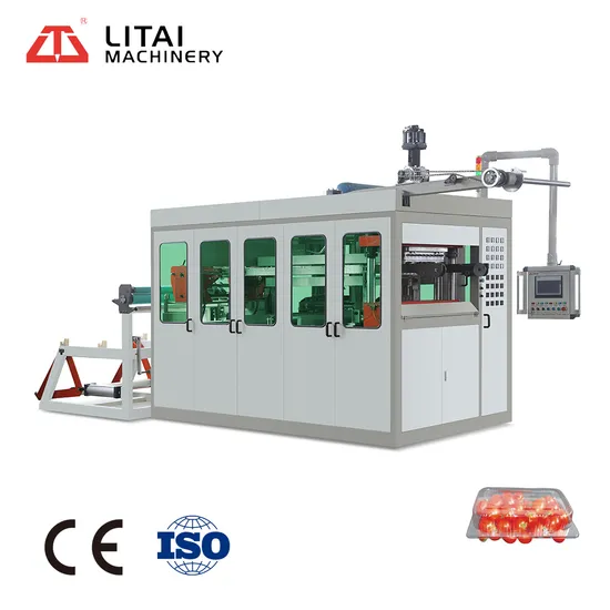 are driven by servo motor. Machine produces disposable products, such as plastic cup, bowl, lid, and