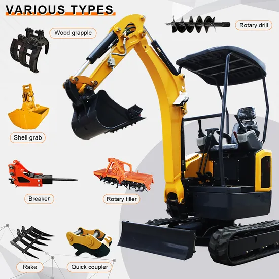 Mini Excavators with compact dimensions can easily drive through narrow passages and doors, small radius of gyration, adjustable dozer blade, easy to disassemble simple shed, 360 degree rotation, high configuration, high performance, small size, light weight, good transportation, low fuel consumption, high efficiency, stable performance, beautiful appearance, safe and reliable, operation Flexible and convenient, and wide application.