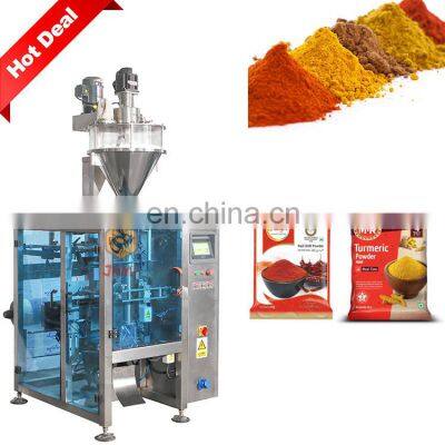 Automatic Spices Powder Pouch Packing Machine for Turmeric Powder Chilli Powder Packing MachineProducts DescriptionApplication>What can this machine pack?packaging of materials requiring high accuracy of measurement or careful handling,such as milk powder, sugar powder, coffee powder, wheat flour, detergent powder, coconut powder,spice powder etc.If you need other bag types, we can provide the machine you need, please click to contact me. Machine InformationHigh precision screw measuring machineBag fromer and bag sealing deviceBag cutting deviceThe machine is equipped with inverter, PLC, servo motor, voltage regulator, etc. to ensure the stable operation of the machine.Machine ParametersMachine Host Model320L420L520L620L720L820LFilm Width(mm)Max.320Max.420Max.520Max.620Max.720Max.820Bag Length(mm)80~24080~30080~350150~350100~45080~500Bag Width(mm)50~15060~20080~250200~350100~350180~400Filling Range(ml / g)150~800150~1500150~2000150~4000150~4000150~6000Packaging Speed(bags/min)5~705~6010~505~5010~405~30Machine Powder220V50/60HZ2KW220V50/60HZ2.2KW220V50/60HZ3KW220V50/60HZ3KW220V50/60HZ3.6KW220V50/60HZ3.6KWMain Features1)Imported PLC full computer control system, color touch screen, easy to operate, intuitive and efficient.2)Impoted servo film transport system, imported color code sensor, accurate positioning, excellent overall performance and beautiful packaging.3)A variety of automatic alarm protection functions to minimize losser.4)Flat cutting, pattern cutting, linking cutting can be realized by changing the tools;easy operation with smooth bags.5)Bag-making equipment can be changed according to specific requirement of customers and products.6)Optional English or other languages screen display, easy and simple operation. Both packaging speed and bag length can be set with one click.7)All machines have CE certification and ROSH certificate.Optional DevicesDepending on your needs, you can choose to add the following configuration. Such as thermal transfer coding machine, linking bag device, gas-filled device, easy tearing device, gusseting device and hole device.Machine Working Process1st step: Setting the parameters you want by touch screen.2nd step: The screw measuring machine automatically measures and fills according to the set parameters.3rd step: The motor automatically pulls the film quickly, and the date printer prints the date at the same time.4th step: The bag former will make the bag automatically.5th step: The horizontal and vertical cutter device will seal the middle and of the bag.6th step: You will get the nicely paper or plastic bag type.Why Choose UsJIKE BEE MACHINERY has a professional team to provide customers with various packaging solutions. Fully understanding the needs of customers,engineers design the most suitable solution. We have our own processing and assembly workshop and quality inspection and debugging process to ensure the quality of the machine. After acceptance by the customer, they are packed in international standard wooden cases and shipped.Company ProfileFoshan Jike Bee Automation Equipment Co., Ltd. is a manufacturer of automatic packaging equipment.We are a production-oriented enterprises focused on product innovation, factory direct sales and perfect after-sales service in one.The automatic packaging equipment for granule, powder, liquid and sauce produced by the Jason company is at the advanced level of the industry,it can be customized production automatic material packaging line for all kinds of products .Mainly applicable to: food, hardware, drugs, daily chemicals, pesticides, fruits and vegetables, cosmetics, other industries.The company has its own patent and product technical certification, which can bring customers high quality equipment and worthy of customer trust.Customer PhotosOur customers have covered more than 80 countries around the world.And give us unanimous praise.CertificationsFAQQ1:Do you have manual or operation video for us to know more about the machine? Yes, not only manual or operation video, 3D drawing also available to make as per your design,also the video we can make of testing the material from our packaging machine if your packing goods easier for us to find from our local market. Q2:How can I trust you for the first time business ?Please note our above business license and certificate. And if you don't trust us, then we can use Alibaba trade assurance service, guarantee your money, and guarantee your machine's on-time delivery and machine quality.Q3:Is engineer available to serve oversea?Yes, but the travel fee is paid by you. So actually to save your cost, we will send you a video of full details machine installation and assist you till the end.Q4:How can we make sure about the machine quality after we put the order?Before delivery, we will send you the pictures and videos for you to check the quality, and also you can arrange for quality checking by yourself or by your contacts in China.Q5:Will you provides the door to door service?Yes. Please offer us your final destination, we will check with our agent to see if it available, and most of the area is ok for us to clearing and sending in your countries.