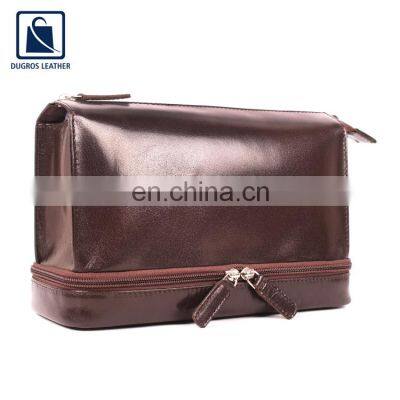 Product Description Fashion Style Premium Quality Unique Design Stylish Women Genuine Leather Wallet Manufacturer We are engaged in the manufacture, export and supply of a massive assemblage of Genuine Leather Makeup Bag. Genuine Leather Makeup Bag that are made using supreme quality leather obtained from our vendors. Vastly acknowledged for their lightweight and optimum finishing, these genuine leather makeup bags are massively demanded and can be availed at reasonable rates. WE CAN WORK FOR THE PRIVATE LABEL Specification Product NameGenuine Leather Makeup Bag MaterialGenuine LeatherFittingsNickle StitchingMatchingLining MaterialWater Proof GenderFemaleProduct Type Makeup Bag Dimension (HXLXW) in cmH 26 X L 18 X W 9 Cm Colors AvailableBlack,Brown,Cognac,Tan,Navy,Customize Etc. Packing & ShippingAbout Us Dugros Leather India Pvt. Ltd., founded in 2006, is an ISO 9001:2015 certified and BSCI –compliant professional OEM/ODM manufacturer. We have been specialized in designing and manufacturing all kinds of genuine leather bags, wallets and accessories for over 15 years. We also have an in-house well equipped LWG certified tannery which processes raw skin to produce finished leather to cater our factories based on the customer’s requirement, thus keeping the quality of leather in control and offering very competitive prices. Other than leather, we also make bags in canvas, jute, nylon and PU. We have been cooperating with clients from Europe, North America, South America and Asia.Our 3 production units all located in Kolkata (India) with two of them in the leather hub of the city (Leather complex, “Bantalla”) along with an in-house tannery, with more than 500 professional and skilful workers, equipped with modern facilities and total production area of 10,000/sq. meters, our monthly capacity reaches 50,000 bags and 1,00,000 wallets.Over the past 15 years, due to the excellent quality, competitive price as well as fast customer service, Dugros has been well known as a reliable and capable supplier to many international group and brands. Our R&D department which is equipped with over 40 professional sample technicians that can create 200pcs new styles every month.Ever since our foundation, we have been focusing on strict quality control over the production to ensure the quality of our every delivery by implementing a ratio of 1QC/20 workers. Our leather/Hardware/Painting edge/Reinforcement/Lining have all passed eco-friendly tests by Intertek and Bureau Veritas.Reasonable prices, the best quality, and reliable service are the soul of Dugros. Trust us, we can work together to create a bright future. Certificates Our Services SAMPLE SERVICES We can replicate any design provided by you and as per your specimen sheet. After making the sample, we do prepare cost sheet and quote our best price based on the quantity. The lead time is 7 to 15 days, depending on the product. Sample prices charged will be refunded after we receive an order according to our MOQ. CUSTOMIZED SERVICES Customized logo can be printed. Sample orders are accepted. Quick response and fast delivery are guaranteed. Customers' designs are welcome. LOGO SERVICES Engraving Laser printing. Silk screen printing: used for simple logos. Colorful foil logos. Rubber sticker printing. UV printing (matte/glossy): used for special material printing. We have all these printing craft and can do as your requirement. AFTER-SALES SERVICES When you place an order with us, during production we will capture clear photos of your products so you can see them step by step. We can book container for you by our forwarder and calculate all kinds of costs during shipping and keep follow up of your goods. If our goods have any kind of problem or quality issue, you can contact us anytime and we will do our best to solve the issue. FAQ 1. Q. Can your factory make any leather goods? A. We have 15 years of expertise in producing leather men’s bag, ladies handbag, backpack, office bag, travel bag, wallets, credit card holders, passport covers, clutches, pouches, slings, key holders, Aprons, gloves, kitchen appliances etc. We also make bags in canvas, fabric, jute, PU. 2. Q. Are those products on your website all genuine leather? A. We primarily deal in genuine leather as we produce the leather ourselves in our in-house tannery. But we do also make goods out of canvas, jute, fabric and PU. 3. Q. What about your products, do they meet the European's environmental standards?A. We abide the EU regulations and meet the standards as we are an SA 8000, LWG Tanners, and ISO 9001:2015 - company. 4. Q. What payment method can you accept?A. PayPal, L/C, D/P, T/T, 30% ADVANCE PAYMENT payments for offline orders. 5. Q. What is your MOQ?A. Bags- 100-200 pcs per style per color. Wallets- 200-300 pcs style per color. Small accessories: 300-500 pcs per style per color. 6. Q. What about the lead time?A. 45-80 days depending on the product and quantity. 7. Q. How can I visit your factory? A. (a) OFFICE ADDRESS- 21E, Gorachand road Kolkata-700014 West Bengal, India. (b) FACTORY ADDRESS- zone no.8/plot 622 Kolkata leather complex Kolkata-743502 WestBengal, India.Get in Touch with Us