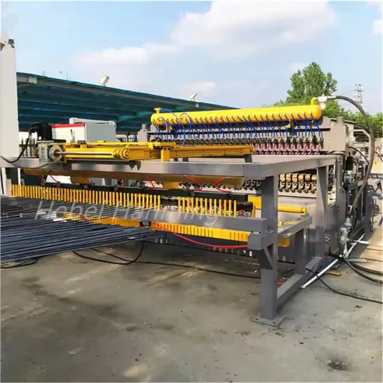 1. The horizontal mesh is 80-200mm, the vertical mesh is 25-200mm, and the maximum width of the mesh is 700mm. 2. Mesh size 700-6000, with trimming on one side. 3. Thread diameter: 4-8 millimeters 4. Welding electrode: The copper base material is purple copper, and the welding electrode copper material is chrome plated copper. 5. The vertical wire is fed into the coil, and the horizontal wire is cut and dropped. Production process: Wire coiling - Vertical line detection mechanism - Single row vertical line straightening wheel - Vertical and vertical line longitudinal feeding mechanism - Storage rack - Double row straightening mechanism - Welding host - Horizontal line hopper - Pulling mechanism - Single side trimming - Cutting machine - Stacking mechanism |
