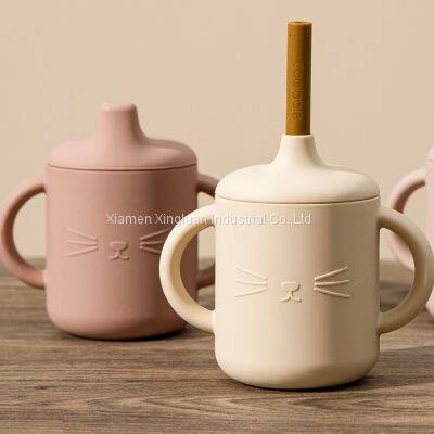 Durable Soft silicone baby cups Straw sippy cup Drink milk Toddlers & Infants