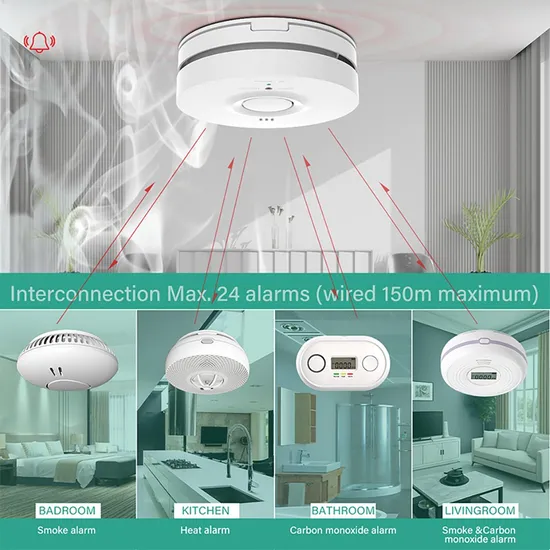 Strong compatibility&Multifunctional: A wireless interlinked smoke alarm fire alarm system can be compatible with other detectors, such as wireless interlinked Heat alarms, wireless interlinked CO detector, Remote controller, Wifi interconnected smoke alarm and so on, wireless-enabled alarms in your home to create a wireless safety network