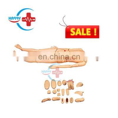 HC-S103 Advanced full-featured nursing training manikins simulator (male) ,Medical Training Model for TeachingProduct Description Features for the HC-S103 Advanced full-featured nursing training manikins simulator (male) ,Medical Training Model for Teaching:Features:Cleaning and combing hair, washing your faceEye and ear cleaningOral care, denture careOropharyngeal intubationTracheotomySucking methodOxygen inhalationOral feeding methodStomach washingThoracic drainageAbdominal drainageArm vein puncture, injection, infusion (blood)Subcutaneous injection of deltoid muscleLateral femoral muscle injectionThoracic cavity, abdominal cavity, liver cavity, bone marrow, lumbar punctureEnema methodFemale catheterizationMale catheterizationFemale bladder irrigationMale bladder irrigationOstomy drainageColostomyHip intramuscular injectionHolistic care: scrubbing, dressing, hot and cold therapyThe limbs are bent, rotated, and moved up and downWound assessment and care: disinfection, cleaning, dressing change, hemostasis, dressingChest wall incision and suture wound careAbdominal wall incision and suture wound careThigh trauma incision and suture wound careThigh skin laceration careThigh infectious ulcer careFoot gangrene, 1, 2, 3 toe and heel pressure sore careUpper arm amputation wound care Calf amputation wound carePictures for HC-S103 Advanced full-featured nursing training manikins simulator (male) ,Medical Training Model for Teaching: Packaging & Shipping Company Information Our Services Contact FAQ1. How to place order of HC-S103 Advanced full-featured nursing training manikins simulator (male) ,Medical Training Model for Teaching?A: Firstly we confirm product details and then send the Proforma Invoice, You make payment to us through Alibaba Trade Assurance or T/T, Western Union or MoneyGram, after we confirm your payment then ship the product to you once finished production. 2. For HC-S103 Advanced full-featured nursing training manikins simulator (male) ,Medical Training Model for Teaching product, What’s the minimum order quantity (MOQ)?A: For disposable material,We have our own MOQ,For our HC-S103 Advanced full-featured nursing training manikins simulator (male) ,Medical Training Model for Teaching our MOQ:1pc, 3. What is your warranty?A: For most products the warranty is for 12 months, some products we provide 18 months warranty. For HC-S103 Advanced full-featured nursing training manikins simulator (male) ,Medical Training Model for Teaching we provide 12 months warranty.4. What’s your delivery time?A: Generally it is 5 working days if goods in stock. within 10 working days if the goods need production, And also the delivery time depands on quantity. For HC-S103 Advanced full-featured nursing training manikins simulator (male) ,Medical Training Model for Teaching the delivery time is 10 working days .5. How to ship the product?A: The shipping way normally depand on your quantity,total CBM and weight. We have our own shipping company to provide best shipping cost and efficient way.