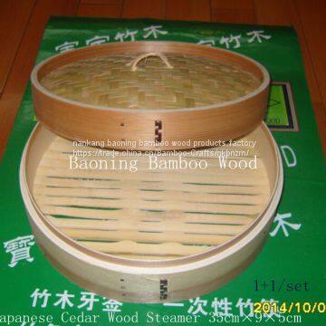 Bao Ning bamboo products produced steamer products: bamboo steamer, Liu fir steamer, a steamer of spruce, aspen steamer. Distinction: oval, square, handle steamer. The complete specifications 10cm, 13cm, 15cm, 18cm, 21cm, 24cm, 27cm, 30cm and so on. Word and branded product, such as: corporate logo, name of the manufacturer, etc.. All products are strictly in accordance with the standards promulgated by the Ministry of Health to perform production, and in accordance with the relevant provisions of the Entry-Exit Inspection and Quarantine Bureau of the product in 2003 to export to Japan, highly praise customers and friends who are interested, please call the contact. The one layer of the product as a set, a cover