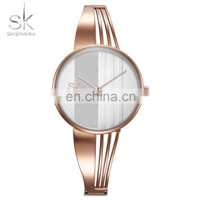 SHENGKE Luxury Bracelet Lady Watch Elegant Dial Hollow Out Band Hidden Clasp Japanese Quartz Movement K0062L Model Number K0062LBrand SHENGKE (SK)Style Fashion Women's WatchMovementJapan Quartz (PC20)Case Material AlloyDiameter /Thickness34.0MM/6.0MMBand MaterialAlloy BandBand Width16.0MMWaterproof3 ATMBattery Life18 Months 1. What's your MOQ? Can I mix styles and colors?A: Take our brand logo watches for wholesale is no MOQ limited , but if customized your logo (OEM ), the MOQ is :Alloy case watch 300pcs/style,can mix 2~3 colors ,stainless steel case watch 500pcs/per style .can mix 3~5 colors 2. Can we print our own logo?A: Yes,we can print your logo or design on the band, dial, buckle, back, case and other place, usually the color of the logo is one color.3.What about the warranty?A: 12 months movement warranty, and we are very confident with our products, and we will pack it very well, so usually you will receive your goods in good condition. But to avoid any subsequent trouble regarding quality issue, we suggest you check the watches once you receive them, and let us know if there is any damaged ones, so that we can deal with it accordingly.4.Do you offer Drop shipping (Blind shipping )?Yes , we offer Drop shipping/Blind shipping,we haven enough experience in drop shipping ,every day we have many watches to send out many countries for drop shipping.5. Do you do custom watch boxes?Yes, we do custom watch boxes. We can follow your requirement to make the boxes ,or you can select our boxes with your logo.6. What movement do you usually use in your watches?We usually use Japanese movement ,Swiss movement, and Chinese movement, for example Seiko,Citizen,Miyota,Ronda ,Kingstar we use most.7.What is your packaging?1.Not over 5 pcs order ,each watch will be put into a bubble bag then packaging well into a safe white bag(as below picture)2.Over 20 pcs order ,each watch will be put into a opp bag, then put into a bubble bag, after that all total put into a white box.(as below picture)For OEM/ ODM Products packaging:Normal packaging 1.Each piece will be put into a poly bag;2.20 pieces into a white box;3.10 white boxes into a 39*30*33cm carton; Special packaging: As per your request. **Note: Only Normal packaging service is free.